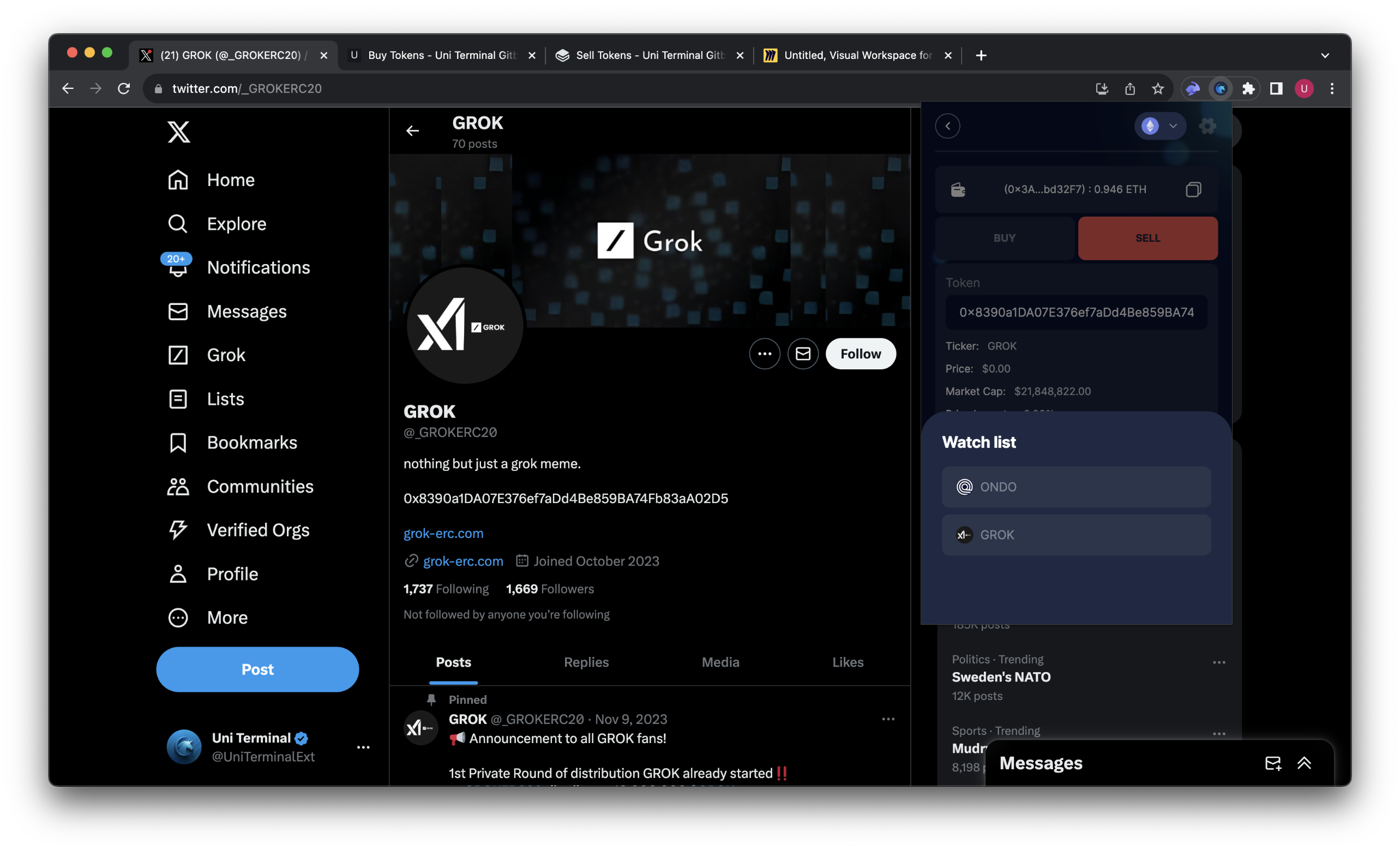 Secondly, you can view tokens in your watchlist and select which one to buy/sell from there.